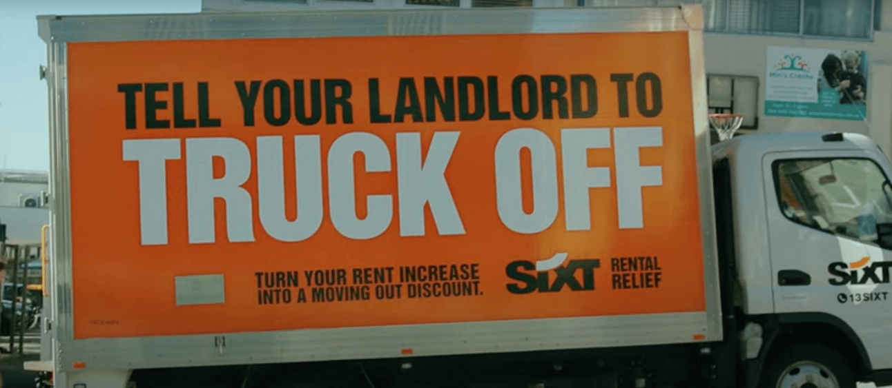 This campaign from Sixt and Bastion caught my eye recently. It’s an incredibly simple idea executed with an irreverent tone. If your rent goes up by a %, our price goes down by the same % to help you move. Wrapped in a layer of messaging that includes TELL YOUR LANDLORD TO TRUCK OFF.